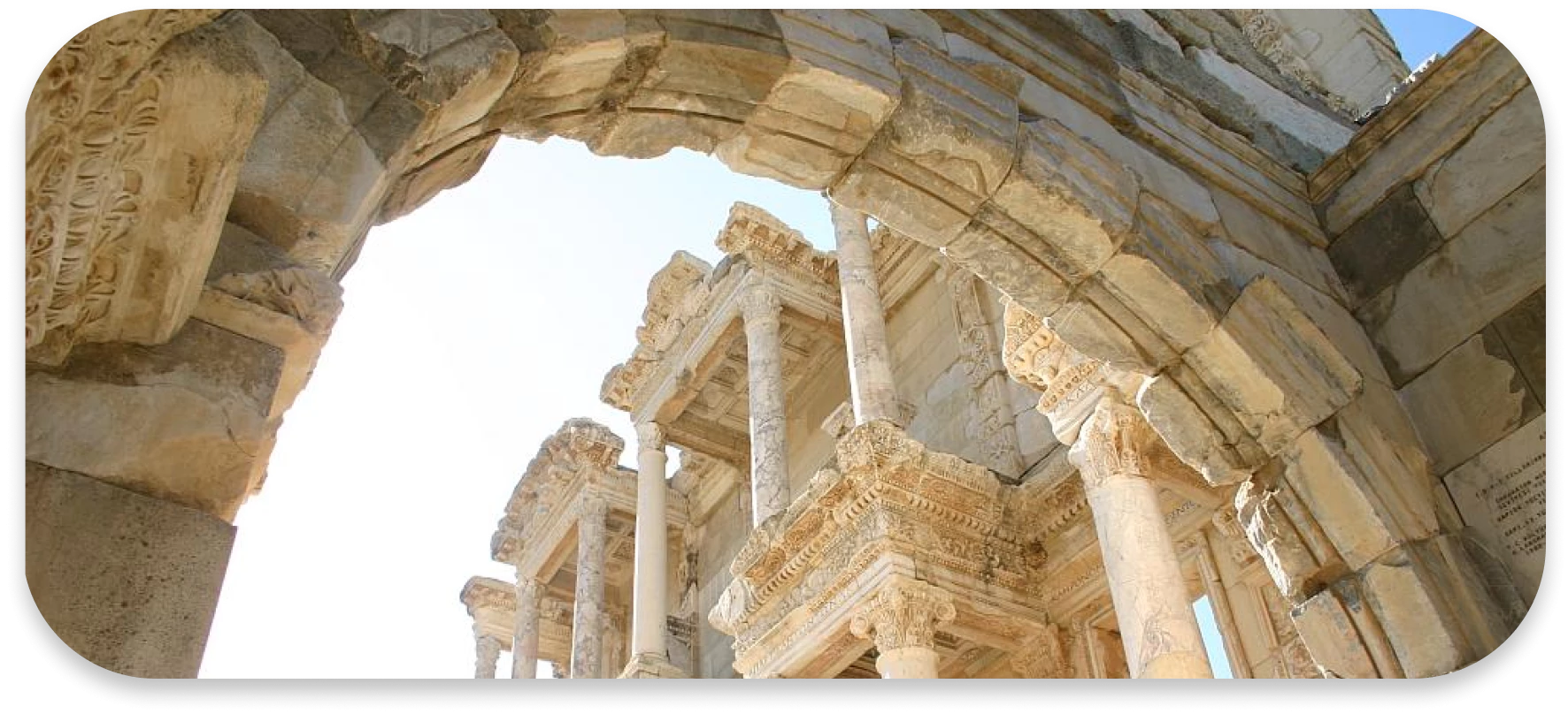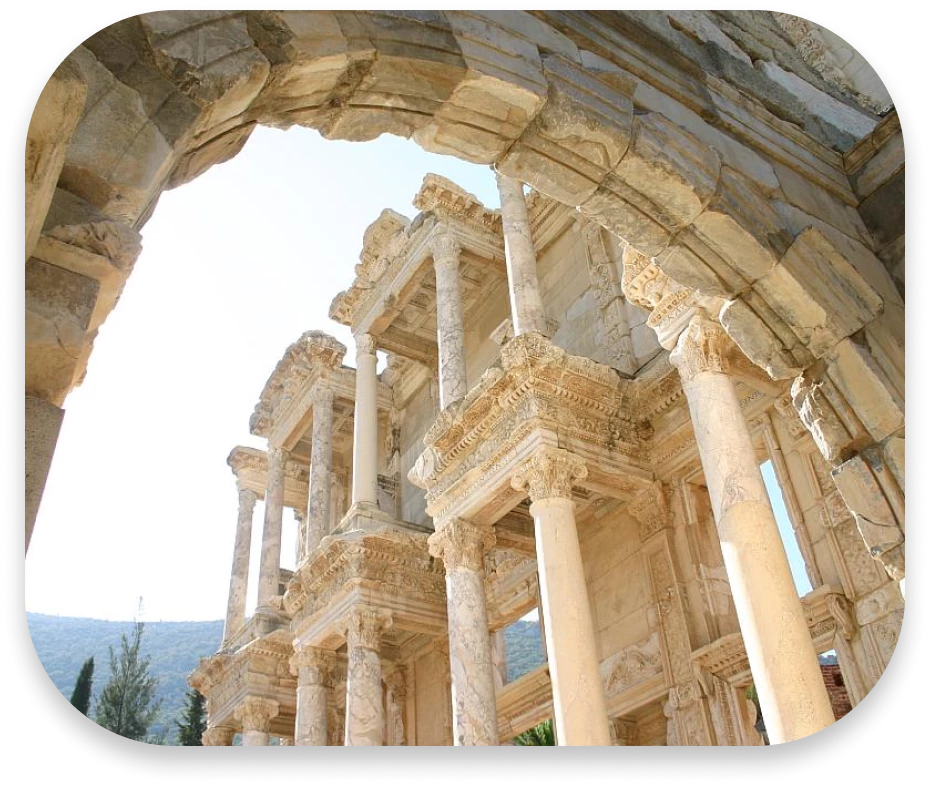 The Gate of Mazeus with three passageways at the right of the Celsus Library was built in 40 A.D by the slaves Mazeus and Mythridates for their emperor, Augustus, who gave them their freedom.