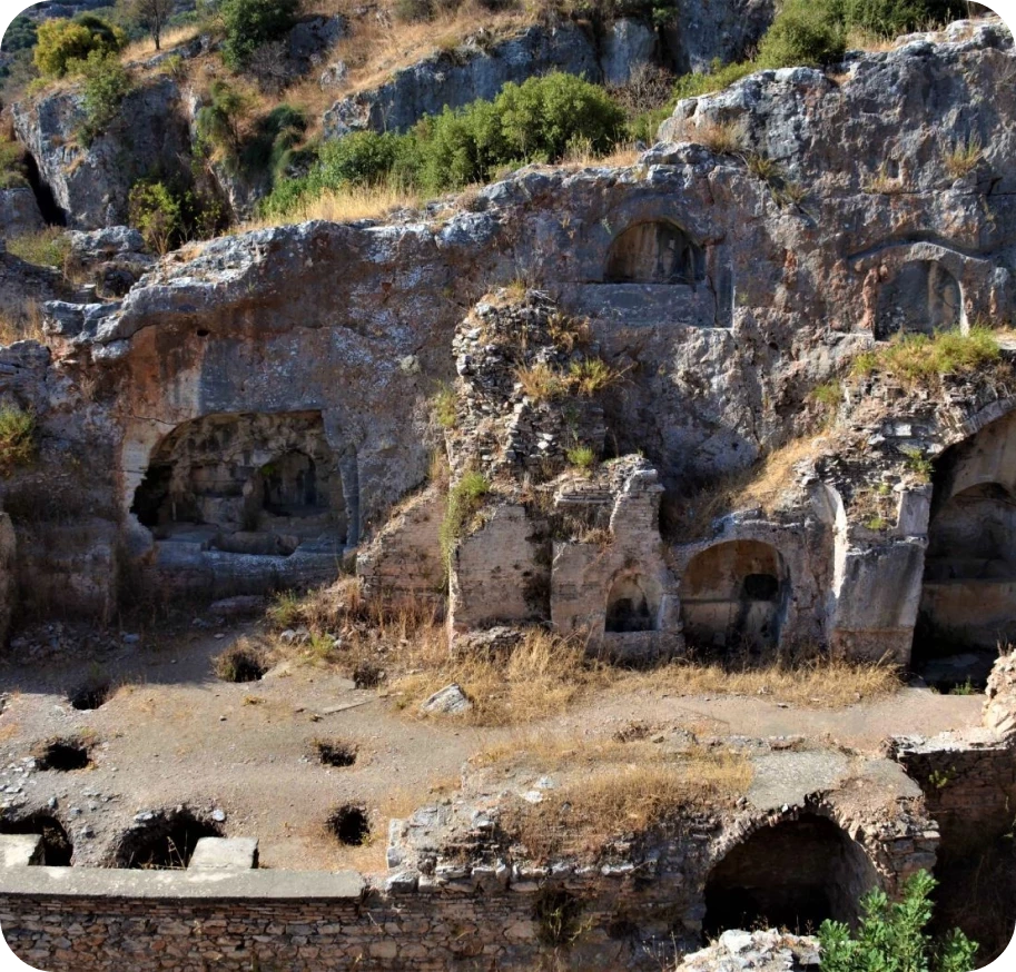 Seven Sleepers is located on the northern slopes of Mount Pion, near Ephesus, The Grotto of Seven Sleepers has been discovered by both Christians and Moslems with a growing interest. According to the Christian legend seven young men were walled in during the reign of Decius (250) and yet were seen alive in the streets of Ephesus during the reign of Theodosius II some years after the Council of Ephesus (431). In the Koran, it is claimed that the sleepers slept 309 years in their tombs. A church has been built above this Grotto by the Christians.