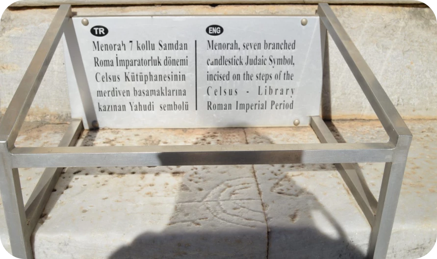 Unfortunately there is a little inscriptional evidence for the Jewish community in the ancient city but Ephesus is mentioned as having a synagogue in Acts 19:1 of New Testament. Synagogue hasn’t been found in and around Ephesus but there is a menorah carving on the step of Celsus library.
