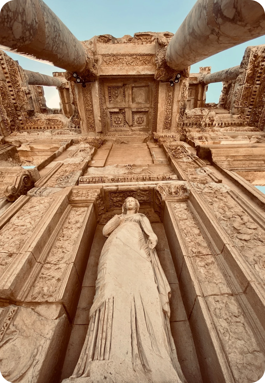 Did you know that Ephesus Ancient City has the ruins of the temple of Artemis? Greek goddess Artemis is known for the goddess of hunting, wild nature and the moon. She was imagined as a fierce huntress. In her earliest representations, she was depicted as a young female holding a bow and arrow in her hands.
